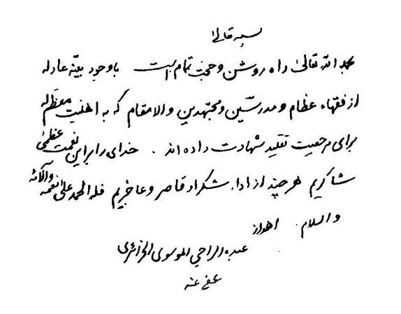اهواز – عبده الراجی الموسوی الجزائری عفی عنه