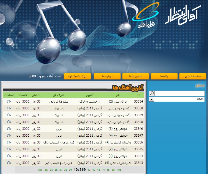 اکنون آهنگ هایی چون «خواهر روح»، «دختران کالیفرنیا»، «امپراطوری ذهن»، «روزهای سگی تمام»، «هواپیماها» از موزیسین های معروف دنیای غرب از جمله "کیتی پری و اسنوپ داگ" ، "جی زی و آلیشیا کیز" ، "هیلی ویلیامز" ، "گروه فلورانس و د ماشین" و... تنها با وارد کردن یک کد، در دسترس مشترکان این اپراتور قرار دارد.